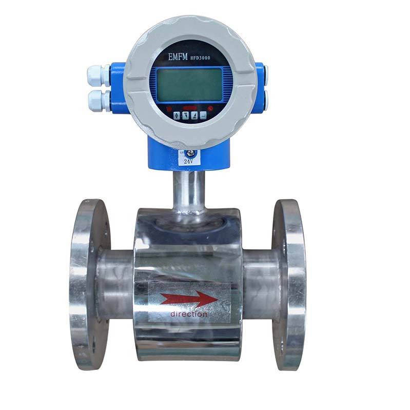 測量流量時,流體流過垂直于流動方向的磁場,導電性液體的流動感應出一個與平均流速成正比的電勢,因此要求被測的流動液體高于最低限度的電導率。其感應電壓信號通過兩個電極檢出。并通過電纜傳送至轉(zhuǎn)換器,經(jīng)過信號處理及相關運算后,將累計流量和瞬時流量顯示在轉(zhuǎn)換器的顯示屏上。
