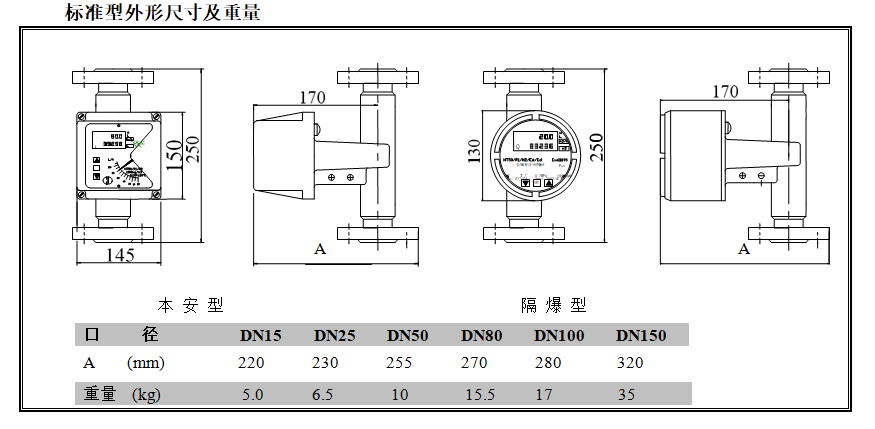 HQ-1005系列金屬管浮子流量計(jì)由二部分組成:傳感器---測量管及浮子;信號(hào)變送器----指示器;傳感器的觸液材質(zhì)有四種:不銹鋼、哈氏合金、鈦材、不銹鋼襯PTFE;用戶可根據(jù)不同的工藝壓力及介質(zhì)的腐蝕性要求,選擇不同的觸液材質(zhì),來滿足工藝的耐壓及介質(zhì)防腐的需要。根據(jù)不同的測量要求,用戶在選型時(shí),可以選擇不同的指示器組合,來實(shí)現(xiàn)不同的測量要求。具體指示器形式與其對(duì)應(yīng)功能見指示器型譜表,流量的測量是由指示器內(nèi)的變送器通過耦合磁鋼感受浮子位置的變化來完成流量的指示和信號(hào)的遠(yuǎn)傳輸出的。當(dāng)被測介質(zhì)自下而上流經(jīng)測量管時(shí),浮子受重力、浮力及流體流速對(duì)浮子垂直向上的推動(dòng)力三者平衡時(shí),浮子即相對(duì)靜止在某個(gè)位置,這個(gè)位置隨浮子與錐管的環(huán)面積、流體流速而變化,浮子的位置即對(duì)應(yīng)被測介質(zhì)流量的大小。